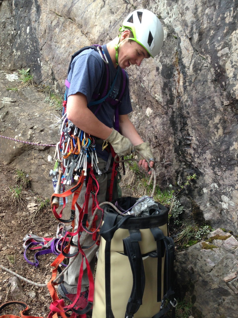 Matt shared with me a wealth of big wall knowledge, from advanced systems to handy tricks. He was very patient with me and helped me to learn many new skills in a safe setting. He gave me a top rope belay while talking me through a reasonably difficult aid climb at the roadside attraction crag. After my successful mock lead, he met me at the top to help me dial in my hauling technique. Following my wrestling match with the “pig,” finally getting it to the top of the cliff, he instructed me on how to safely rappel with a haul bag by riding on top of it. In addition, he talked me through the intricacies of cleaning an aid pitch while jumaring. To round out the instruction, he taught me the valuable methods of piton craft; I can now comfortable say I know the difference between a lost arrow and a knifeblade.