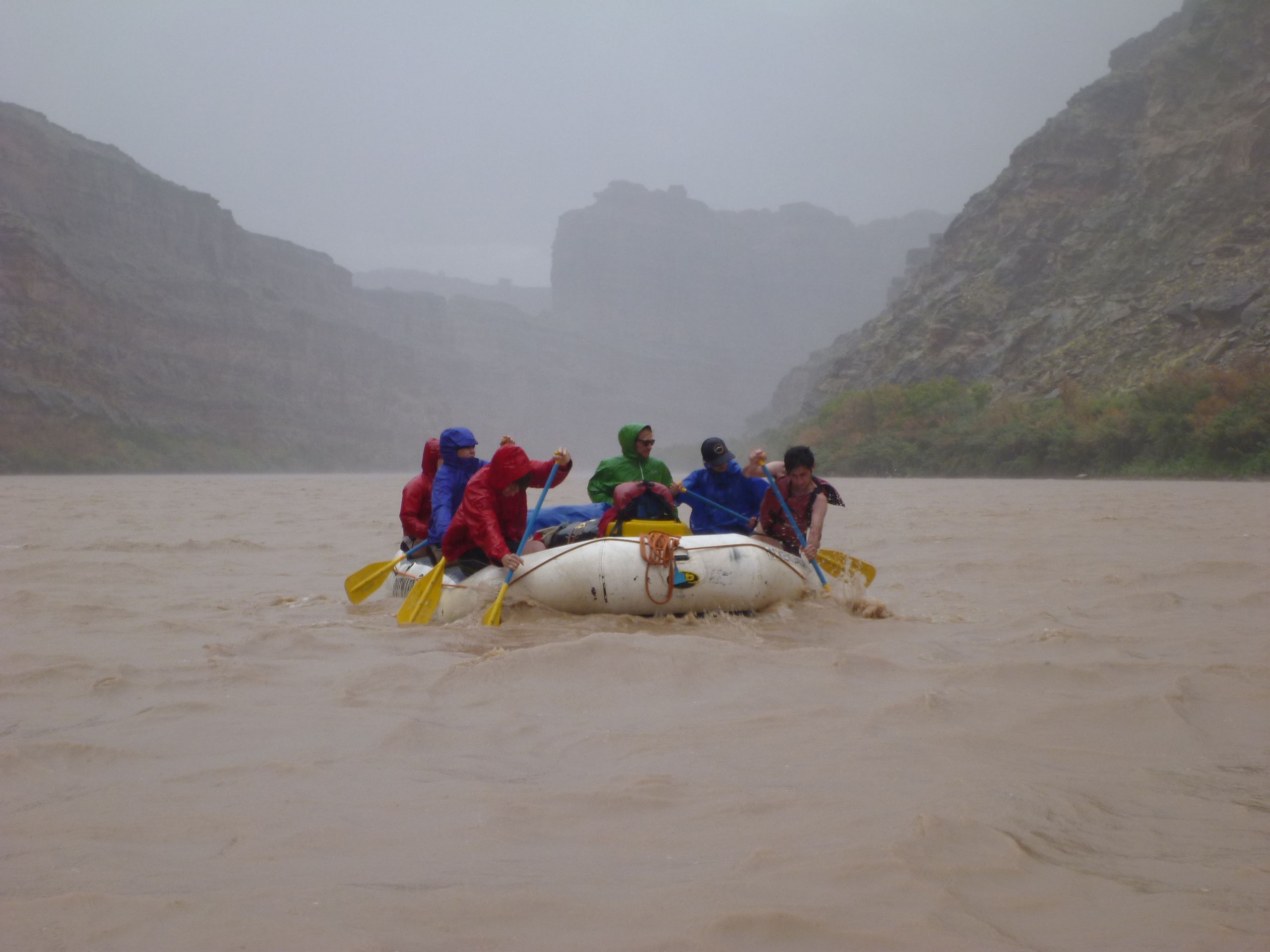 This year’s expedition began at 4:45 am. The students were clean, sleepy, and anxious; and were as big a group of individuals as you will ever see. Athletes and scholars, the popular and the outliers, the outdoorsy and the video gamers, new students and exchange students still learning English, all thrown together to voyage into the uncertain unknown. The bus ride was quiet, and the students mostly sat alone, listening to their music, anxious. We met the Outward Bound staff on time at 9 o’clock, next to the river near Moab, Utah. Immediately the staff had the students involved with introductions and trip details. There was no time for looking back, only forward; the group pushed off, Outward Bound, at about Noon.