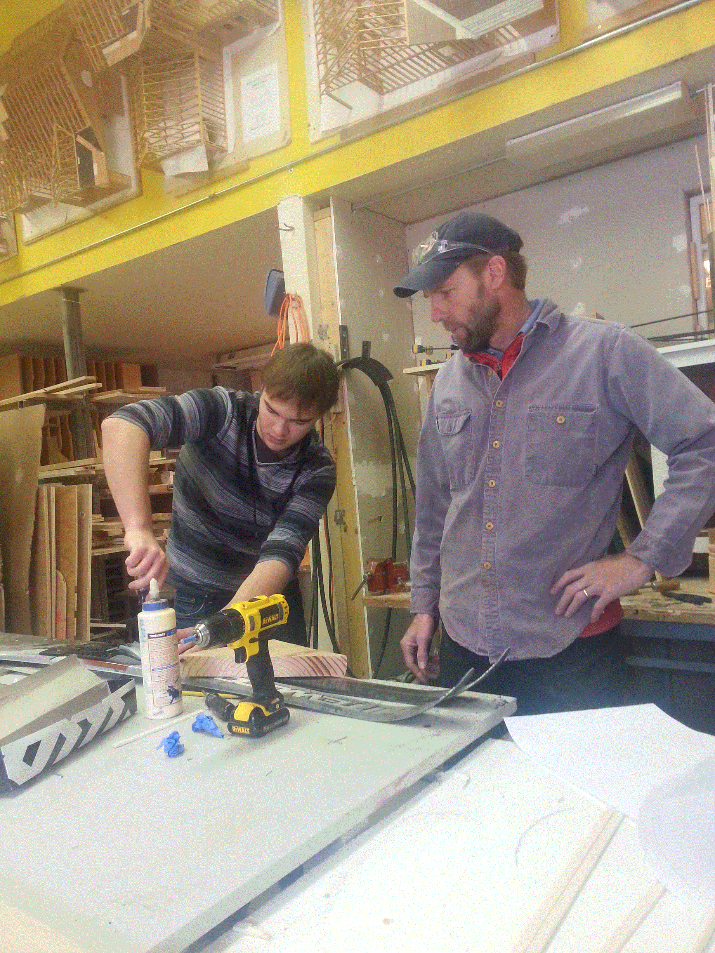 Student mounting new ski equipment.