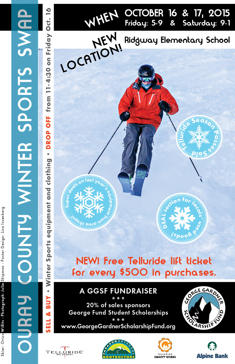 Ouray County Winter Sports Swap ~ Oct. 16 & 17, 2015 October 3, 2015December 30, 2020 by Jerry Roberts, posted in News and Events Share this: Click to share on Facebook (Opens in new window) Facebook Click to email a link to a friend (Opens in new window) Email Like Loading... Related